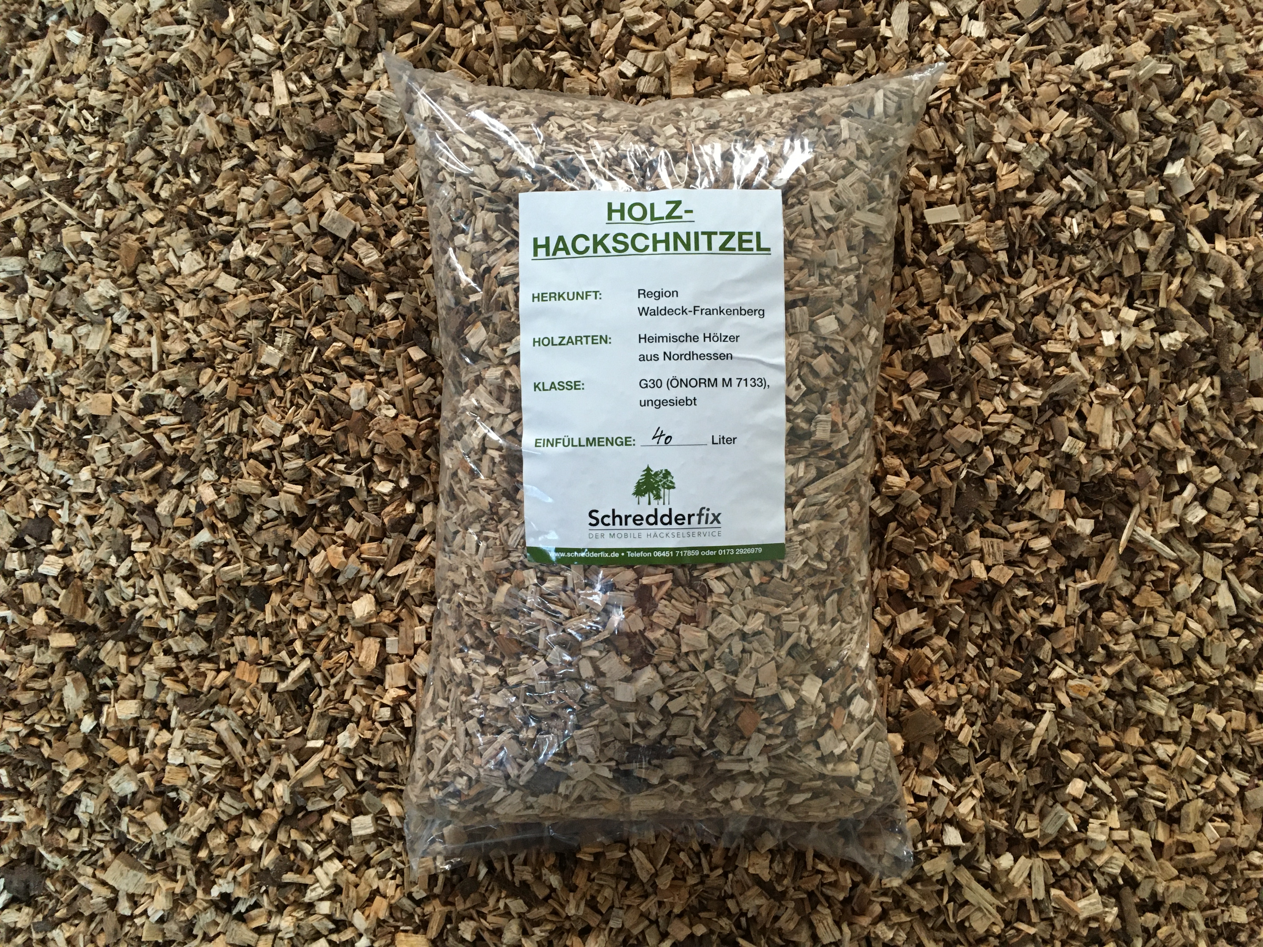 Wir erzeugen die Hackschnitzel aus naturtrockenem Holz. Dabei wird darauf geachtet, dass keine Grünanteile wie Fichtennadeln oder Blätter verarbeitet werden. Wir verwerten z. B. ‚Käferfichten‘ aus unserer Region. Das unterstützt die hiesige Waldwirtschaft zur Bewältigung der aktuellen Situation und vermeidet unnötige Transportwege für die Rohmaterialien.